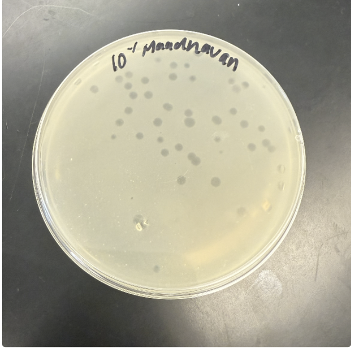 | Lysogeny Notes | Lysogen 1 grew well and had clear HTL spots, showing that it does not have immunity to the phage. Lysogen 2 did not grow well, which could mean it is a leaky lysogen or that the result was affected by HTL splash. The serial dilution of HTL on M. smegmatis looked normal with clear plaques. The phage release assay showed no phage release, indicating that the phage is lytic rather than lysogenic. |