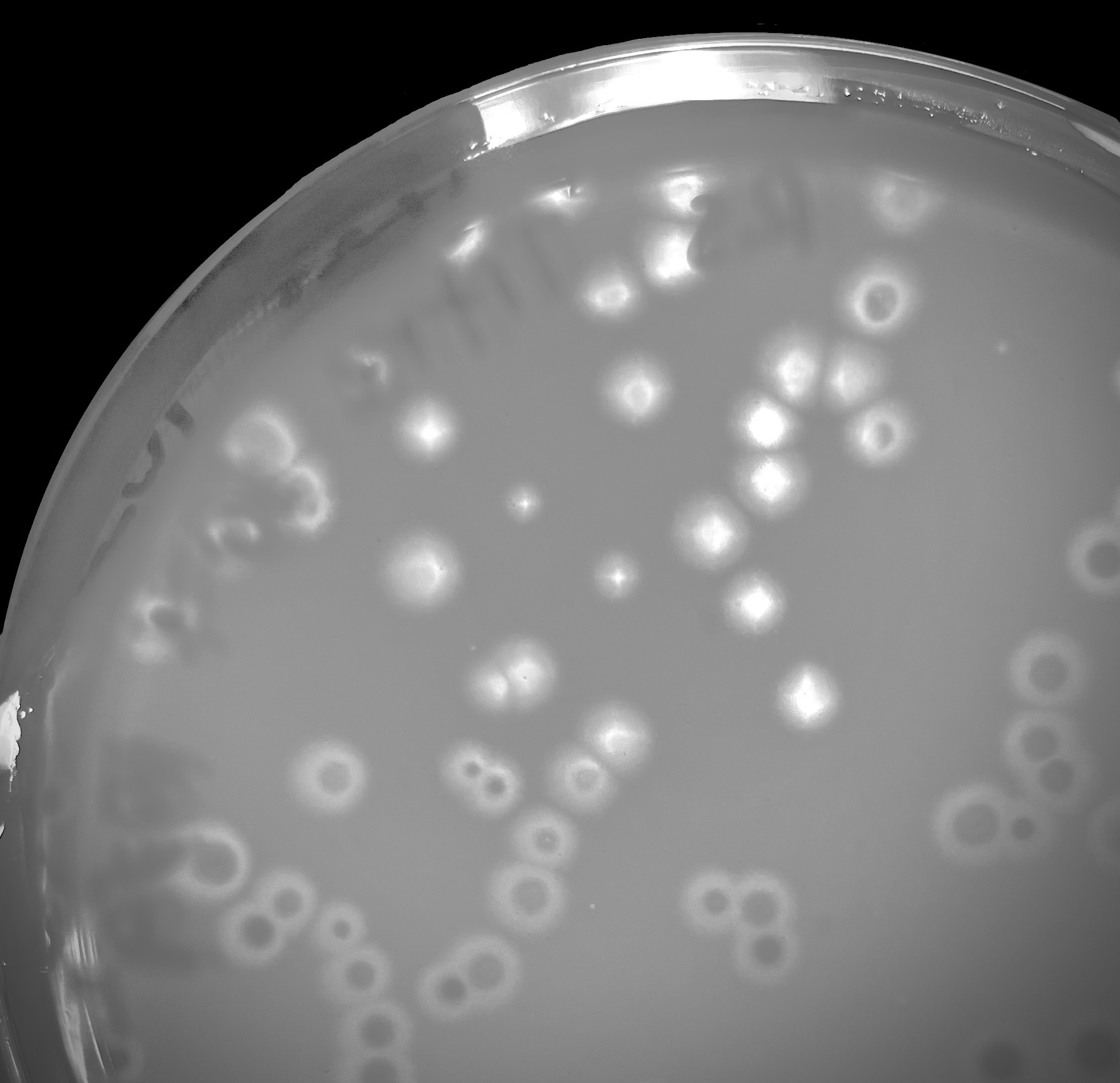 | Plaque Notes | The plaques formed by my phage have a bull's-eye morphology, characterized by a clear center surrounded by a turbid ring. An average plaque size of 4.14mm was calculated, with a standard deviation of 4.14 +- 0.44mm. |