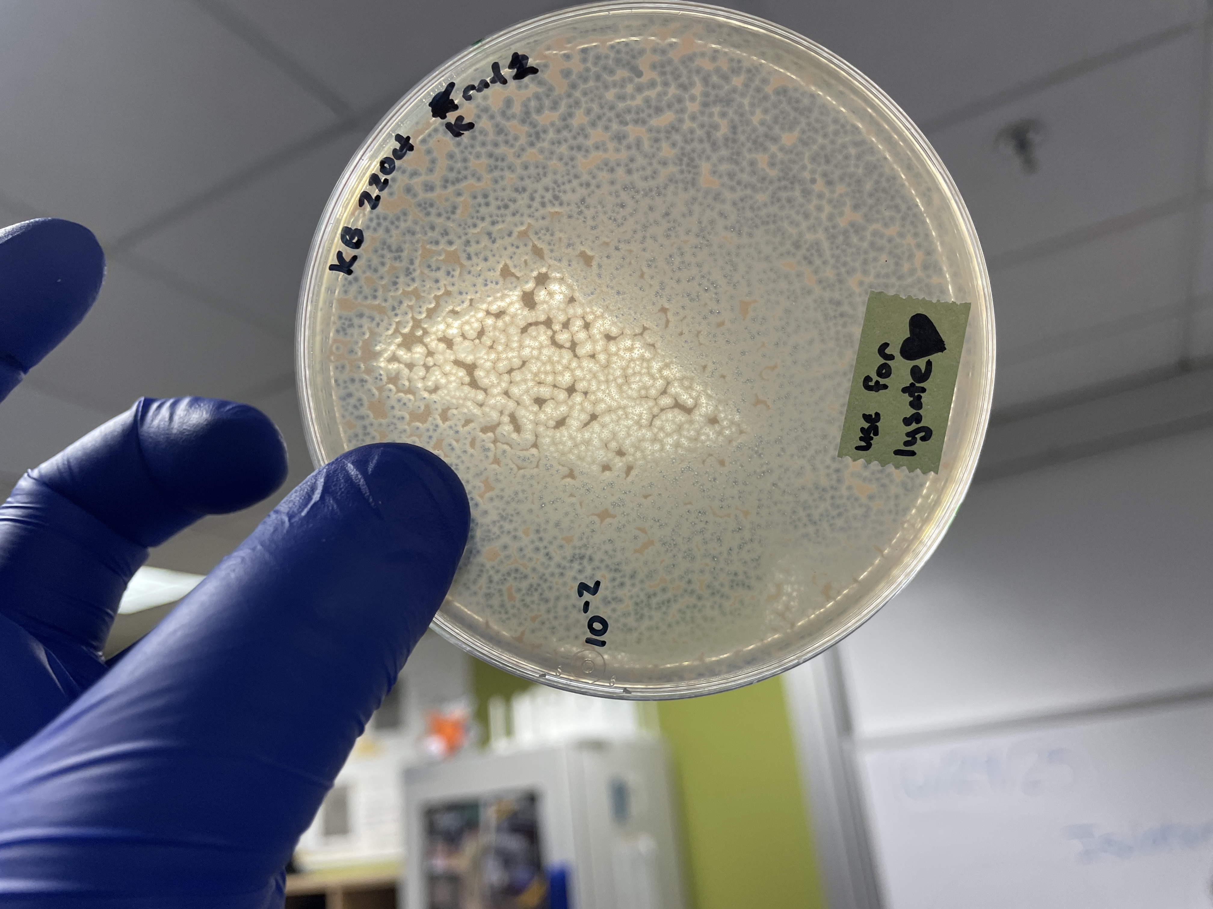 | Discovery Notes | The soil sample was collected from a compost pile with the help of my four-year-old sister Rania. The compost, taken from 2-8 centimeters below the ground, was filled with pumpkin shell and seed fragments. It was collected on 2025-10-06 at 8am, and the temperature was 19 Celsius. Isolation commenced the same day at 1pm. After two rounds of purification, two phage were discovered in the same sample, differentiated by different plaque sizes. This is the larger of the two; the other is named Luthien. |