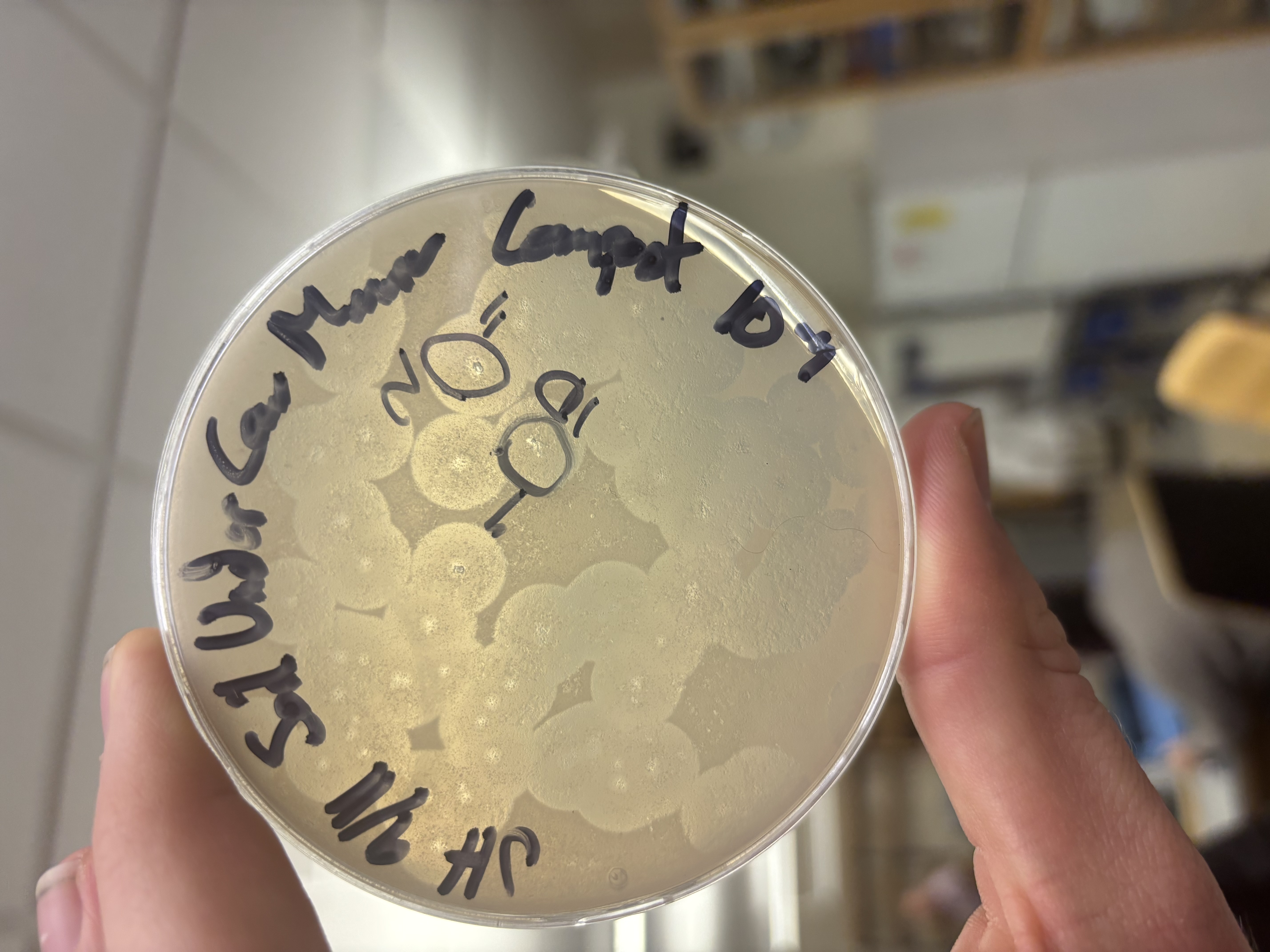 | Discovery Notes | I located the phage from a soil sample taken from a cow pasture. I dug about a foot down into the soil/compost to collect it. |