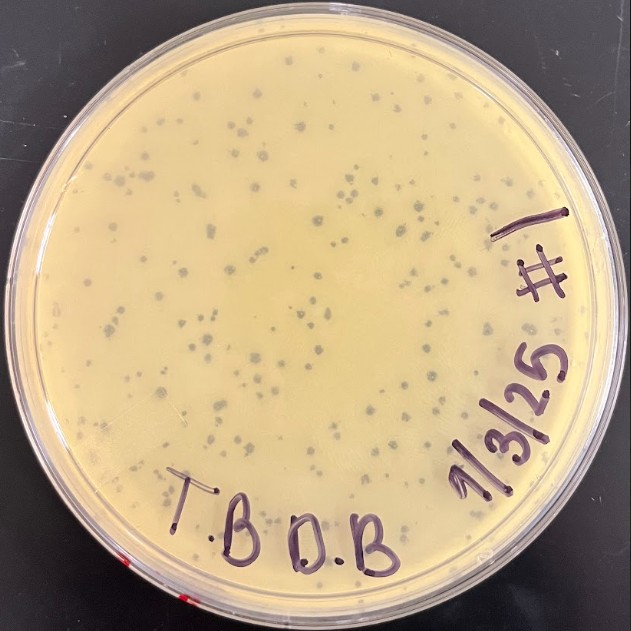 | Plaque Notes | Plaques are small to medium in size, circular, and evenly distributed across the plate. They appear clear to slightly turbid with defined edges, indicating lytic activity. Plaque formation is consistent and distinct, with no evidence of contamination or irregular growth. |