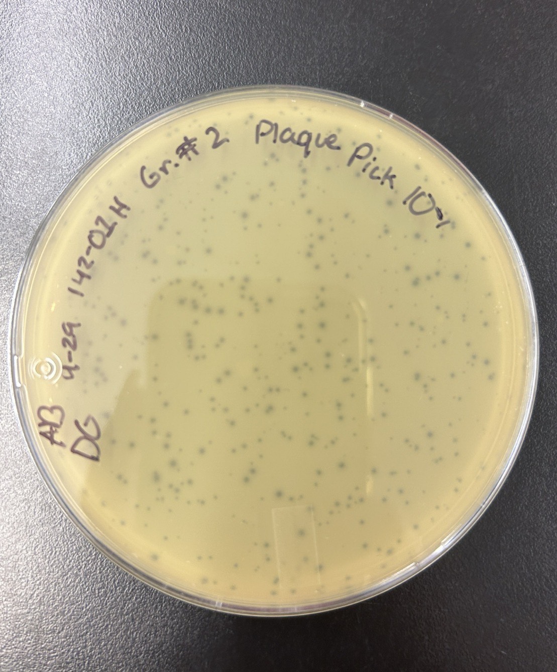 | Plaque Notes | The phage was about 3 mm in diameter and was circular in shape, They appeared consistent across the plate and were well-isolated, which made them good for suitable for purification. The phage also had a blurred edge. |