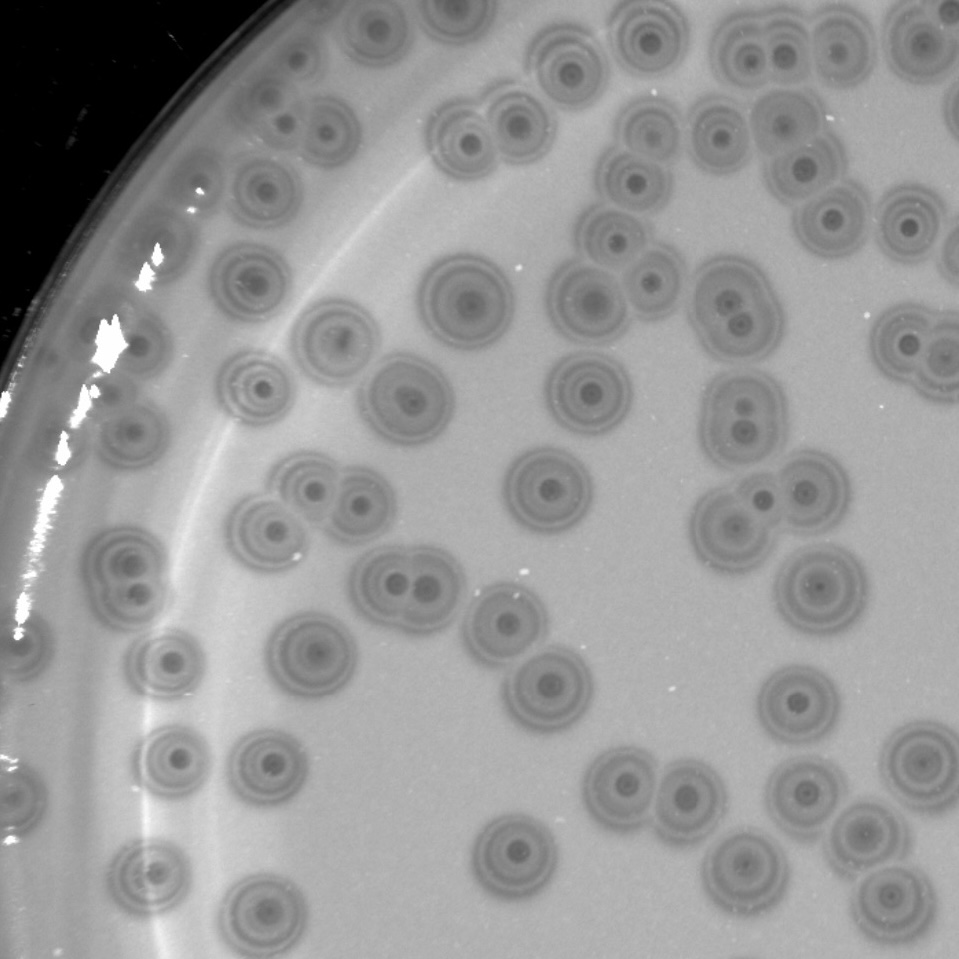 Plaque Notes | Plaques are turbid, approximately 4mm in diameter on average, with distinct concentric halos and a ~1mm clearer centre. |