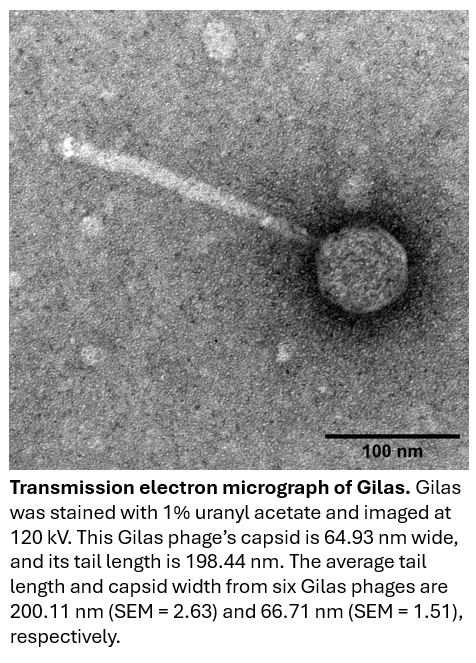 | Discovery Notes | Found in a friend’s homemade compost, beneath about 40 cm of dead leaves. The ambient temperature was around 12 °C. Genomic DNA was sequenced on a ONT Minion, R10.4.1 chemistry using rapid barcoding V14 and PCR amplification. The longest read was 35,505bp with 94% query cover, 96% identity to phage Stap (cluster F1). Additional reads of 9315bp had 59% query cover, 100% identity to phage UncleRicky (cluster F1) |