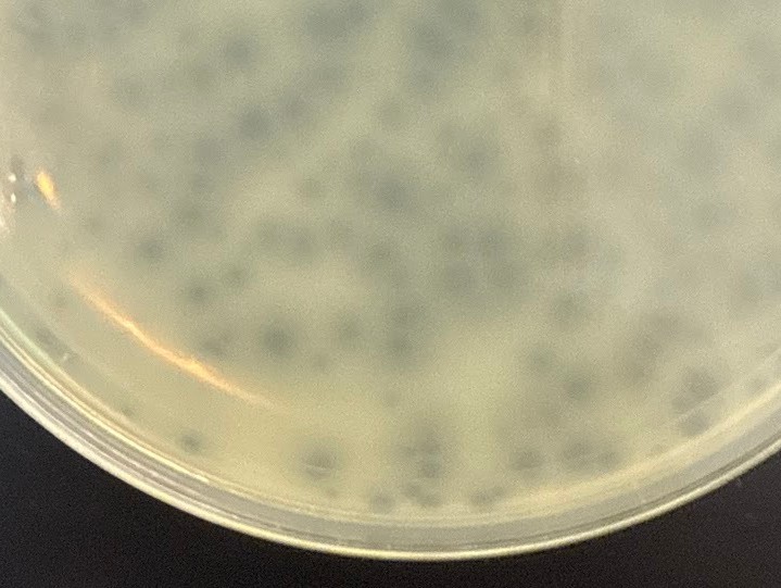 | Plaque Notes | The phage type appears larger with a wide light halo and tends to cluster and overlap, with a few of the phages being smaller with a less prominent halo. Both types are circular in shape. The plaque size appears to be between 3mm and 1mm in diameter. |