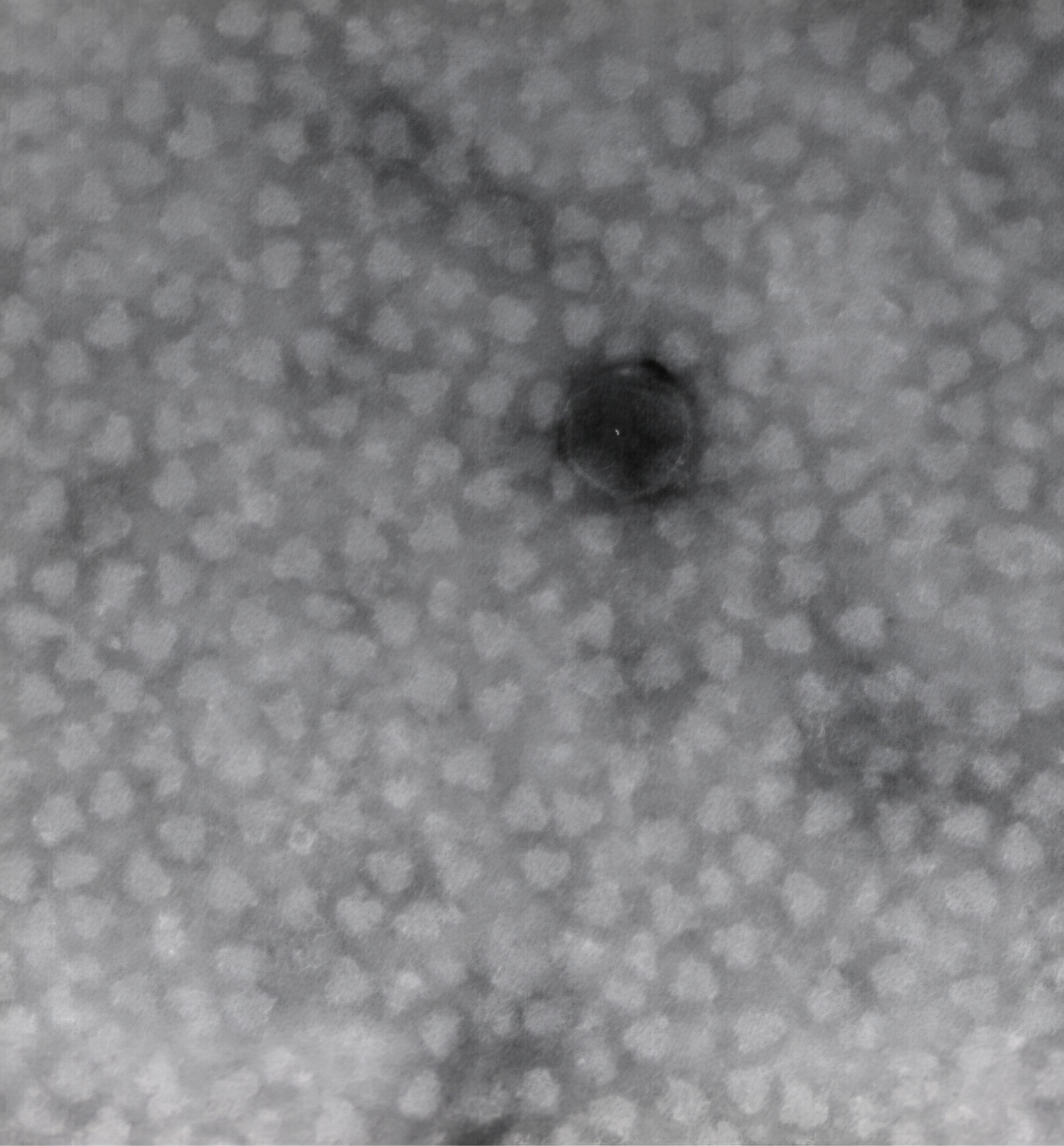 | Lysogeny Notes | Presumed virulent/lytic; plaques are clear with no signs of turbid centers. EM image of the phage confirms Podoviridae morphology: icosahedral head with a short or non-visible tail (estimated~60nm head diameter)." |