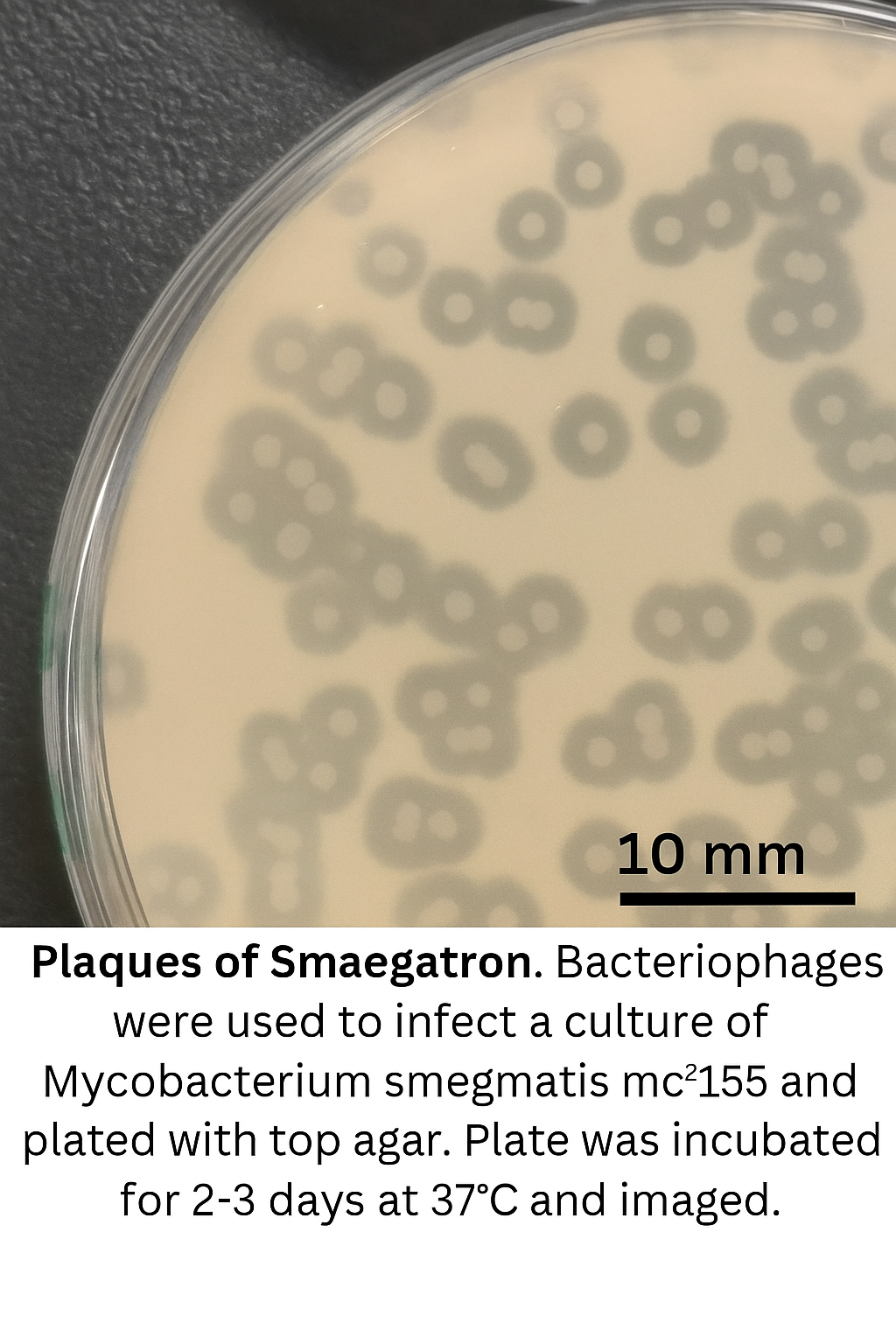 Plaque Notes | The plaques are medium-sized to large (about 3-4 mm) and display a distinctive bullseye pattern, characterized by a clear center surrounded by a darker, turbid ring. Many plaques show consistent ring structures. |
