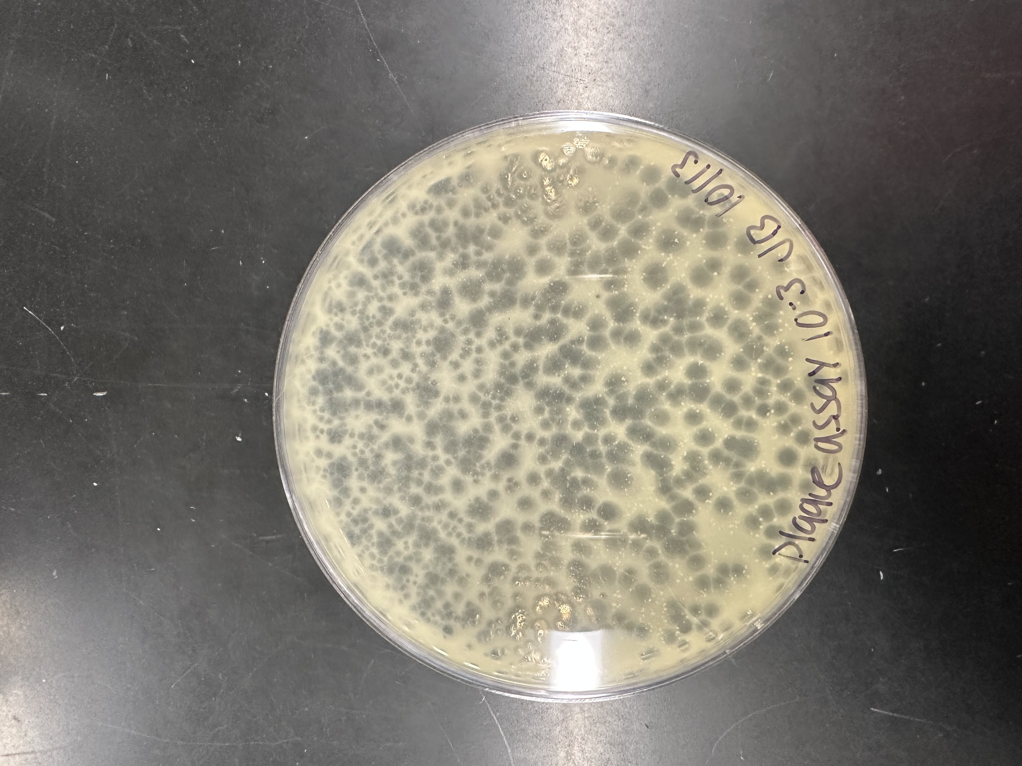 | Plaque Notes | Plaques were circular with a cloudy center and slightly clearer edges. The plaque diameter was roughly 1.8mm. Overall morphology is consistent with siphovirus type. |