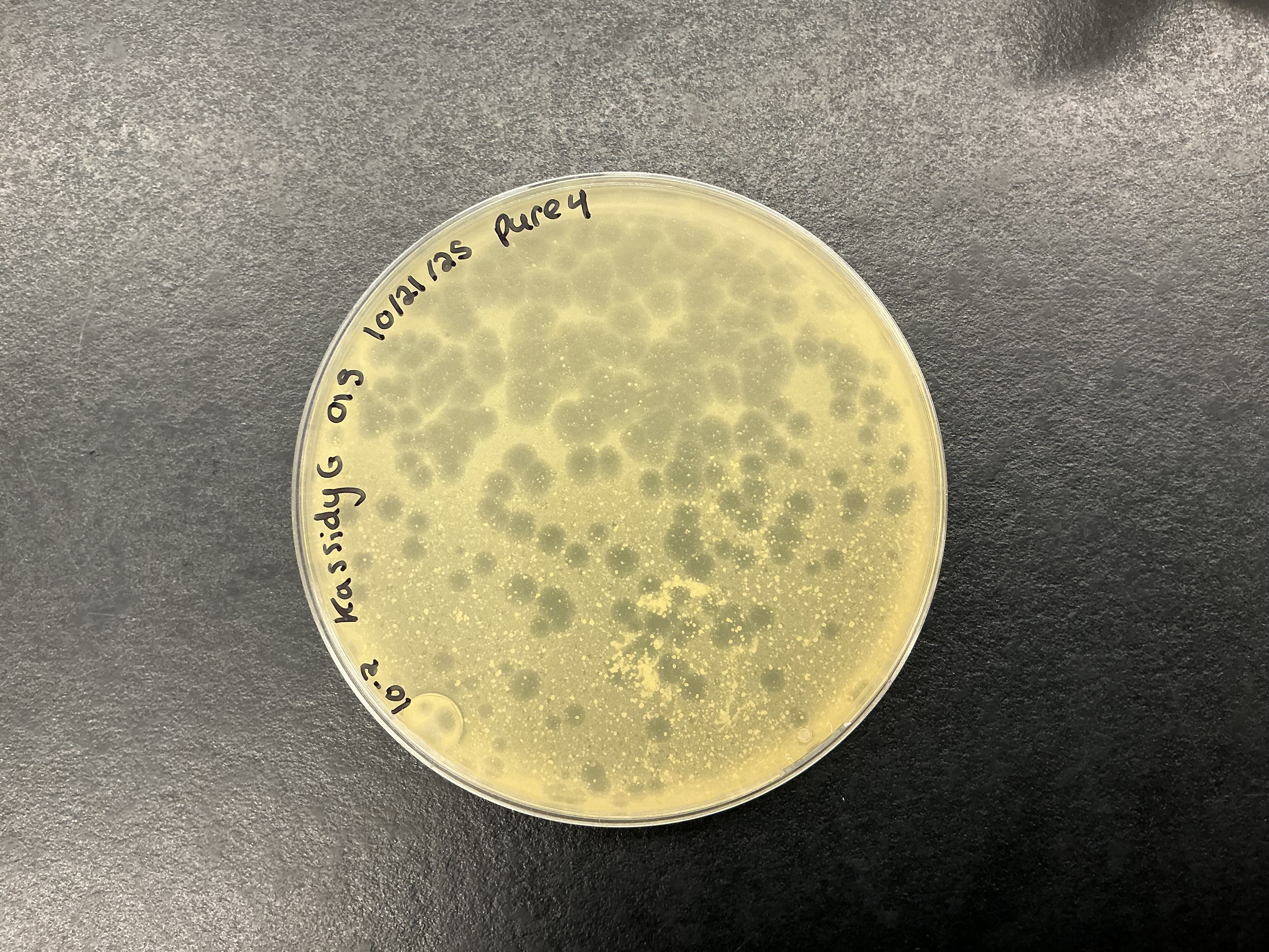| Plaque Notes | two different phage species to start. Some that are super small and some that are bigger. Clear lytic plaques. Size was about 0.5 cm for each plaque size. |