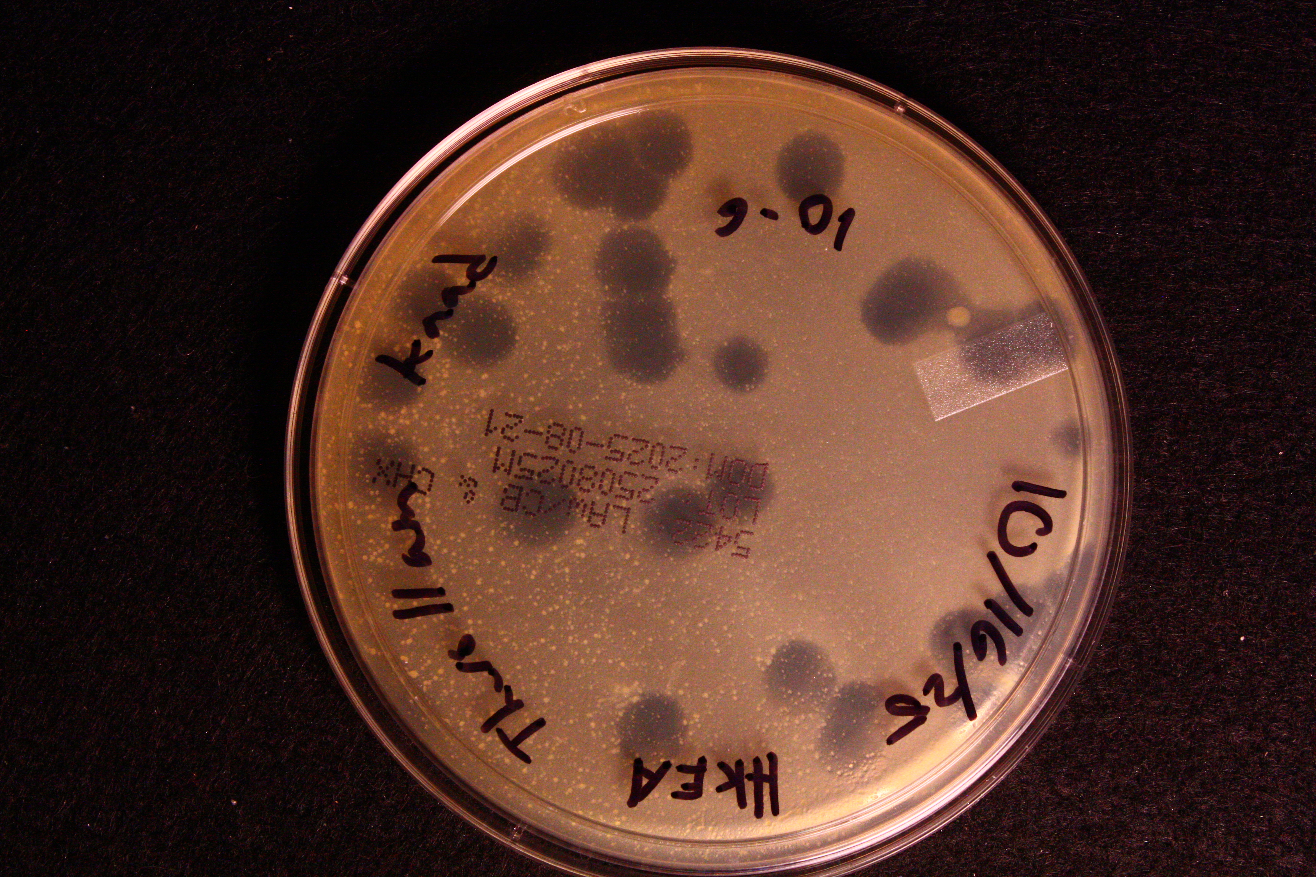 | Plaque Notes | Average head width: 63.27 Average tail length: 155.1 Plaques are clear with halos. Larger plaques are hazy on the edges; smaller ones have clean, smooth edges. Plaque sizes range from approximately 0.3 to 0.7 cm in diameter. |