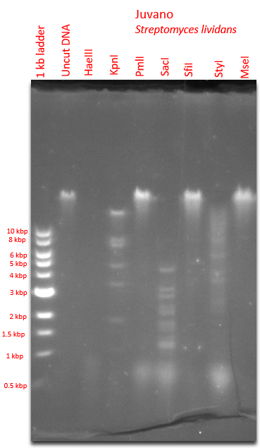 | Lysogeny Notes | The end results proved inconclusive, because the phage had eaten away at half of the agar but did leave small plaques in soome of the sections. Juvano did not produce any lysogen, confirming that Juvano is a lytic bacteriophage. |