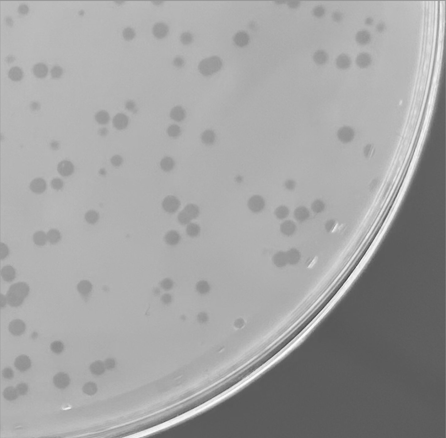 | Plaque Notes | In the plate of agar seeded with M. Foliorum (with the phage lysate diluted to 10^-2), two different phage morphologies were visible, one of 0.8mm and one of 1.6mm |