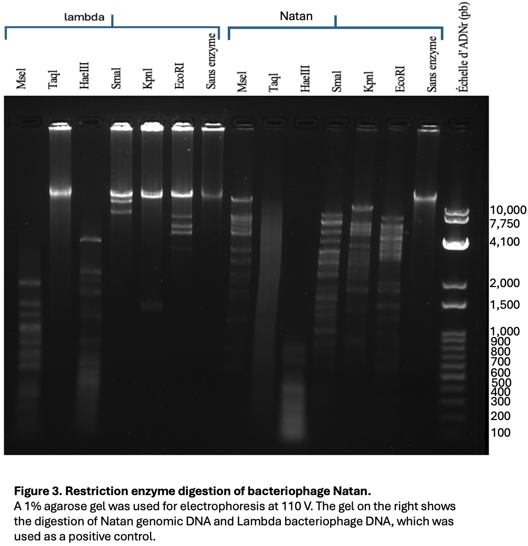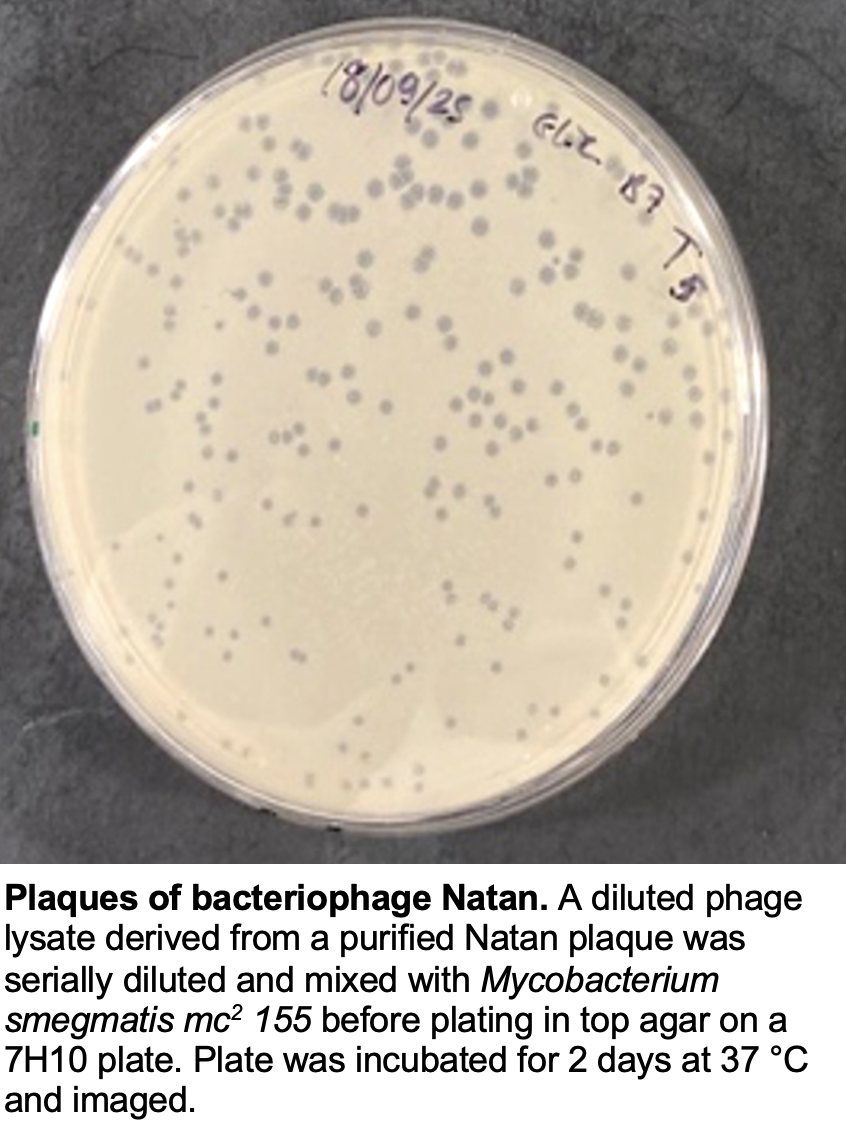 | Plaque Notes | Plaques produced by phage Natan were medium in size. They showed a bullseye appearance. The plaques were not fully clear, which may reflect incomplete lysis. |