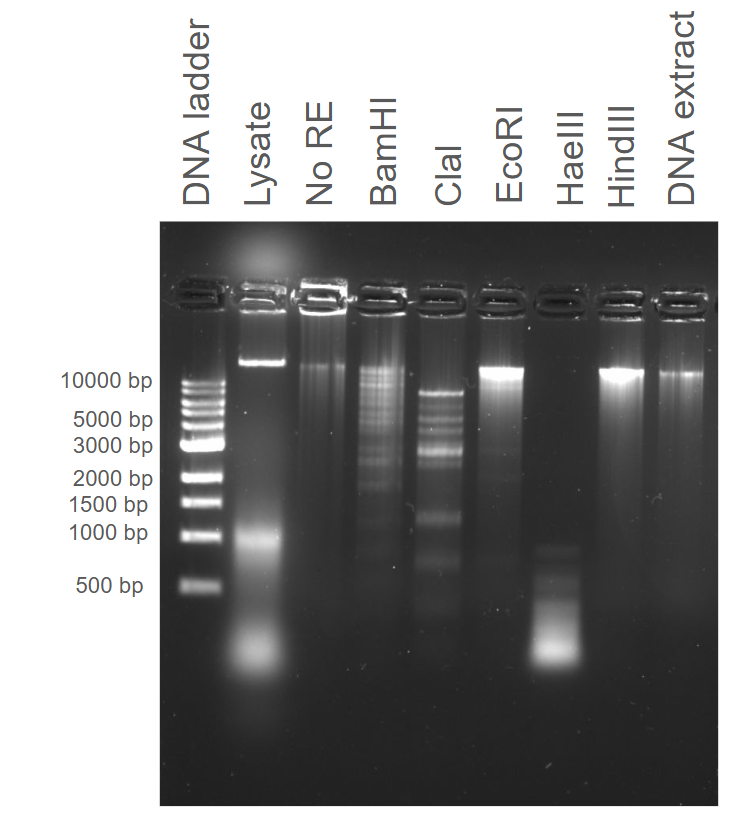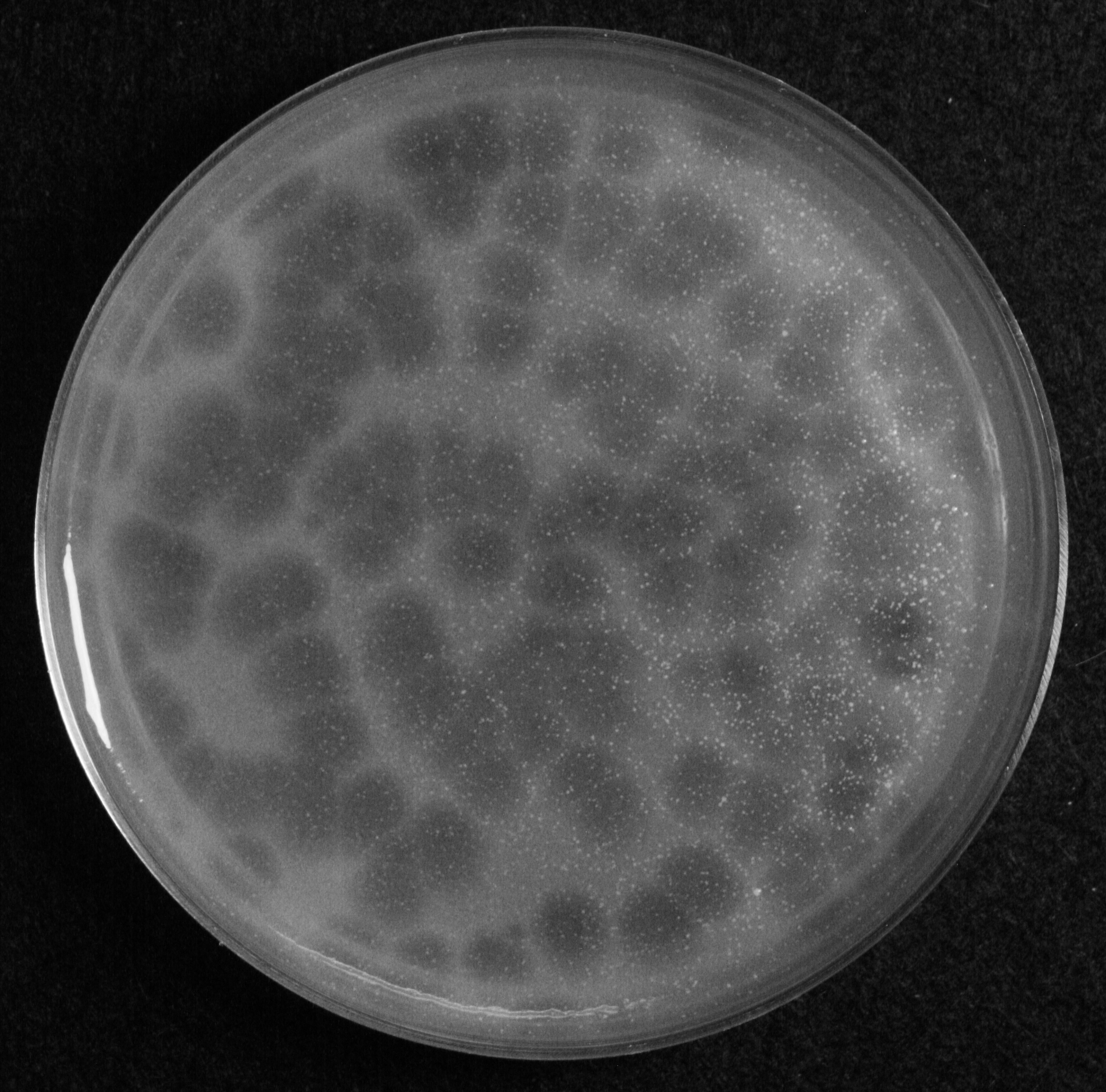 | Plaque Notes | Our phage produces plaques ranging from about .4 to .6 cm in width. They are not consistently clear, as they get cloudier as they spread near the edge. |