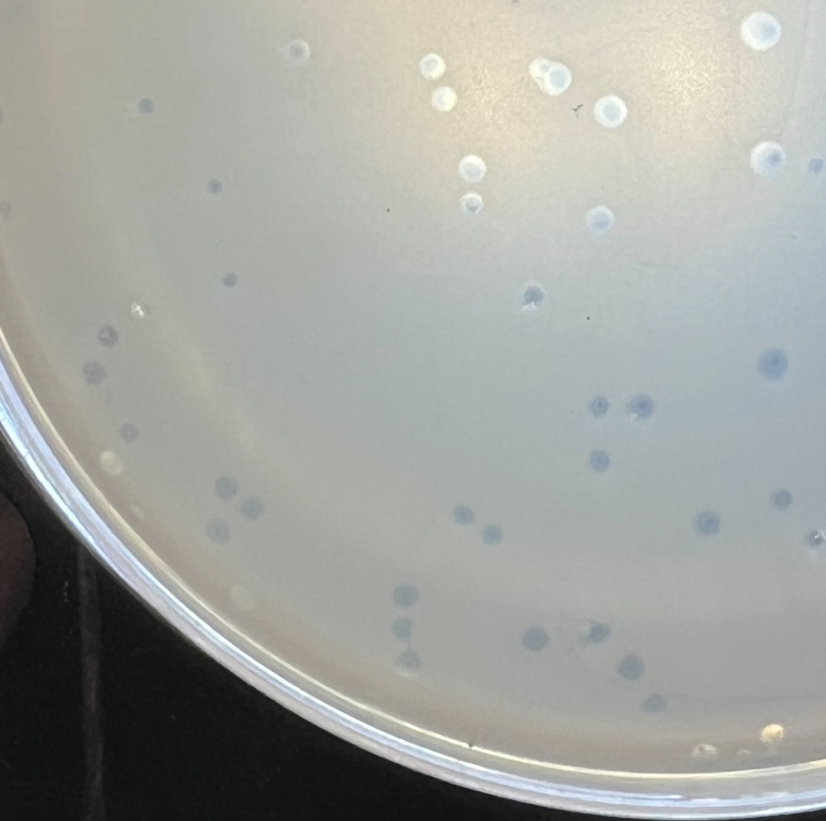 | Plaque Notes | 10 µL of dilutions 6-9 were plated after 250 µL of late-log Arthrobacter globiformis B-2979, after which 3 mL of 0.4% PYCa top agar was added to create double-layer plates. In subsequent rounds of plating, all of the plaques were large (2mm diameter, range 1-3 mm, n=10), clear, and circular, and looked like a bullseye (nearly clear circle with a hazy yellowish center). The morphology was clear and is semi-consistent with the morphology seen on the D9 plate. |