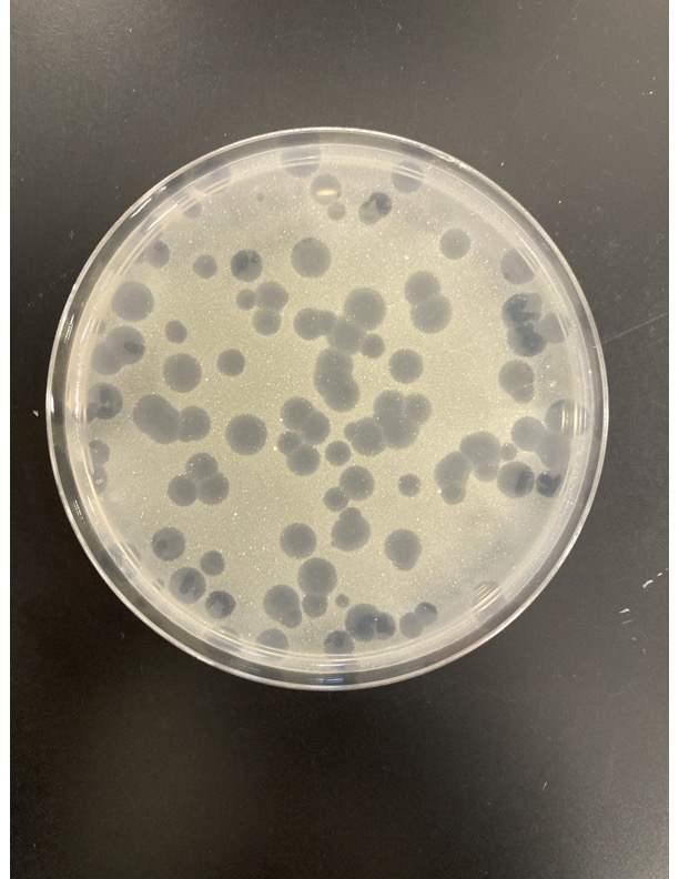 | Plaque Notes | Plaques plated on L-Agar with 7H9 top agar using Mycobacterium Smegmatis as a host produces plaques that range from 0.5mm-7mm in diameter. Half of the diameter in the middle of the plaque is a complete clearing while the other half of the diameter is a turbid ring. Plaques vary greatly in size when they are plated in high density while the size of each plaque becomes more consistent when plated at a lower density, settling at approximately 5mm. |