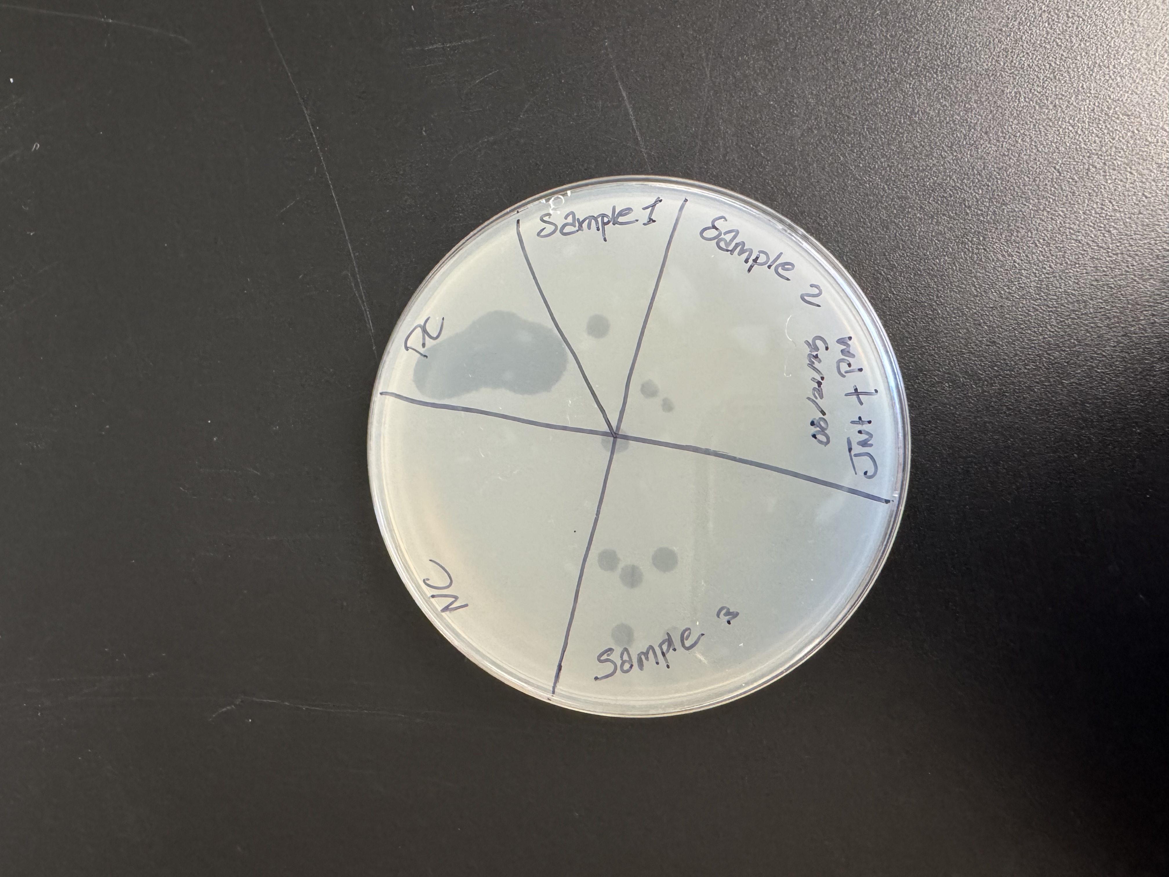 | Plaque Notes | Our plaques were small and not that big, around 1mm-3 mm. They had a circular shape, clear and not fuzzy around its. When we did the phage serial dilutions it looked like galaxies and stars. The phage looked like SpongeBob and all the spots on his body. They plaques also looked like moon craters. |