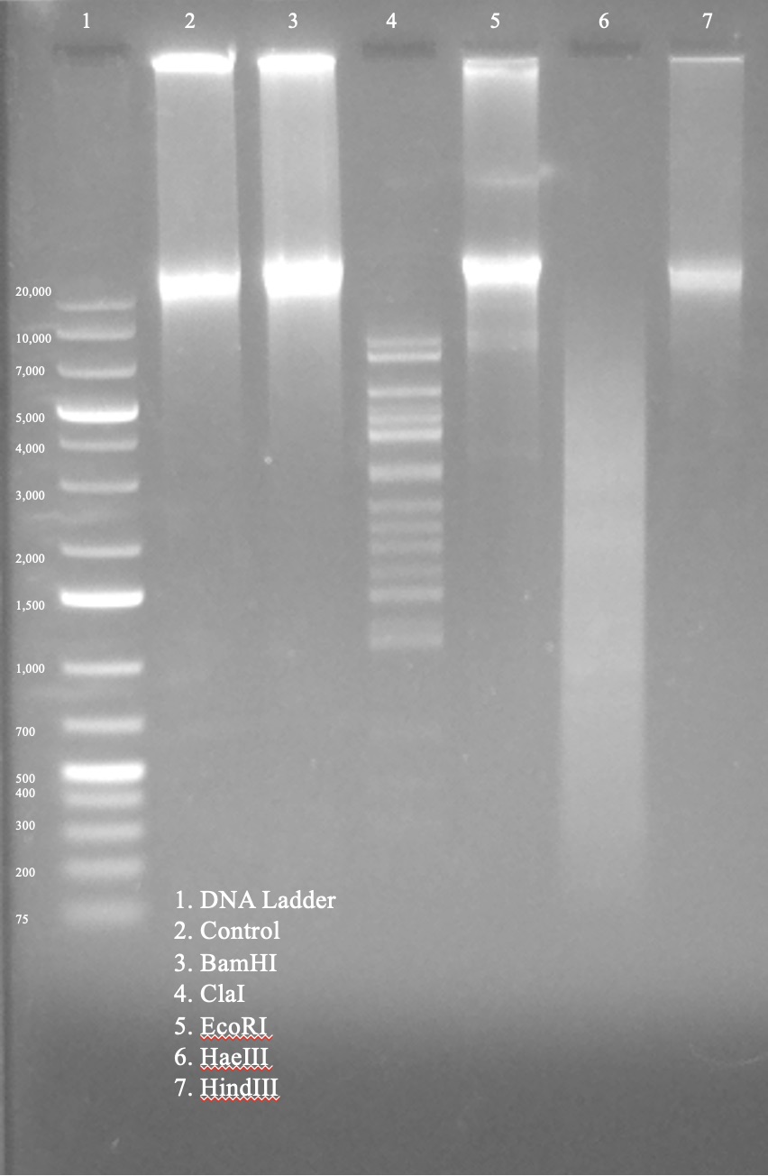 | Discovery Notes | My phage was collected at night from a soil sample 1-inch below the surface outside of the apartment in which I reside. The soil was still slightly moist due to a recent sprinkler cycle. 1X 7H9 Complete was used for enrichment purpose. Contamination was seen in my original spot-test, but was likely a result of my own improper aseptic technique in plating as no contamination was observed in a subsequent spot-test. Once my phage was isolated, I observed that the plaques it produced were large and somewhat turbid, signifying that I likely isolated a temperate phage. My calculated phage titer was 6x10^11. However, when sample was observed using electron microscopy, a low quantity of phage was observed. This may signify a phage with a high infection rate, which would explain the high PFU calculation. |