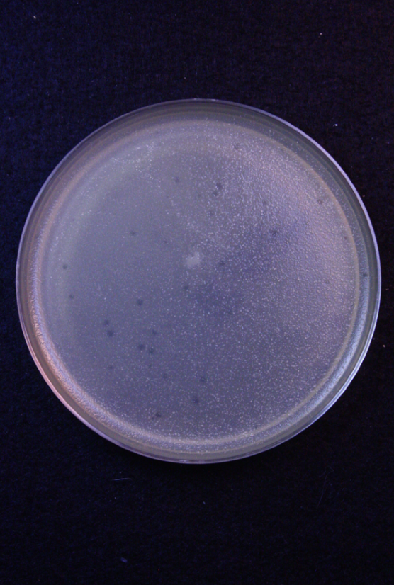 | Plaque Notes | The plaques are small, around 1-3mm in diameter. The edges are not hazy at all, and very clear as to where the phage lysed the host bacteria. The plaques take very long to form, around 1-2 weeks at room temperature. |