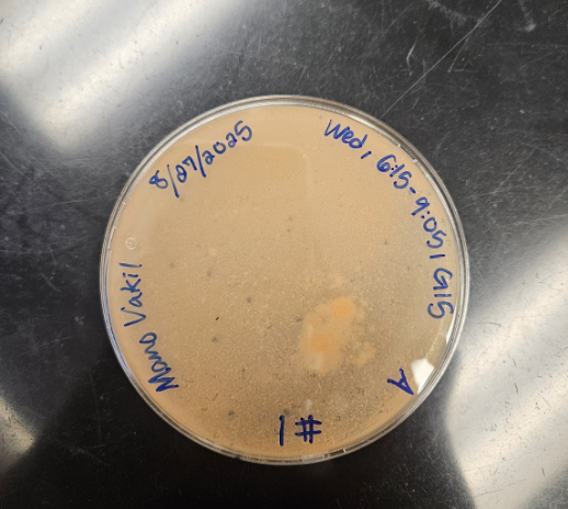 | Discovery Notes | Group Members: Sarah Brown, Nathaniel Coller, Junfeng Pan Soil sample found outside Hillman Library in a flowerbed facing Schenley Drive (taken during Fall Semester of 2025) Taken @ 11:37pm, 8/26/2025 Rained earlier that day Somewhat shaded but mostly sunny area Flowerbed had mostly shrubbery, not really flowers Soil soft and moist Lab Instructor: Kevin McDade |
