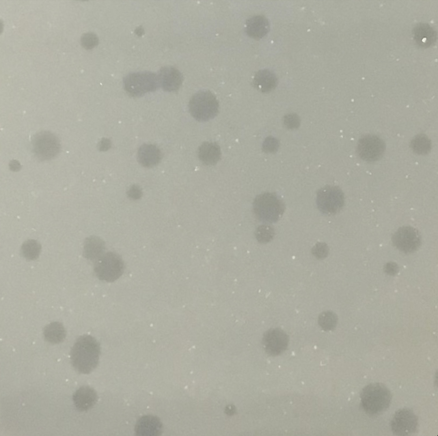 | Plaque Notes | The plaques shown on our plates demonstrate various medium to small plaque sizes. They look to be slightly cloudy and have a flat surface. |