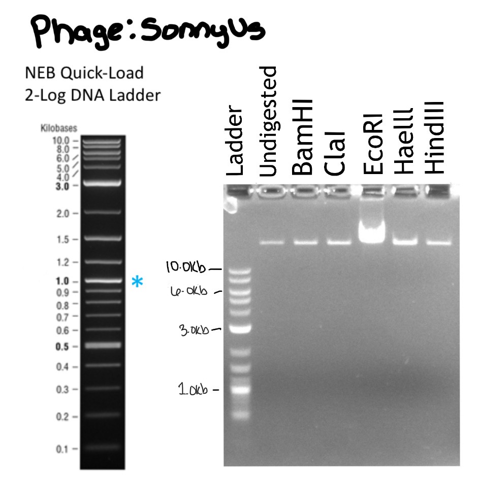 | Plaque Notes | The results of experiments yielded phages with plagues of 1-2 mm in diameter. My plaques were clear. My plaques form after around 24hr in incubation. Plaques were small and clear, between 1-2mm with the average being 1.6mm taken from 10 phages, and they emerged after 48 hours. -MM 11/25 |
