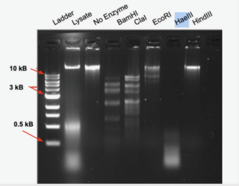 | Plaque Notes | The plaques formed by SoupyD67 on a 10-7 concentration full plate titer done on 10/15/25 vary in size, the average size is 0.5 cm, which is a sign of the presence of more than one specific phage. There are 5 total plaques on this plate, all having a clear center and a turbid off-centered outer edge. All plaques were once the same size, but over time, some of them grew. This indicates there may be multiple kinds of phages present, one that grows faster (lytic) than the other (turbid) |