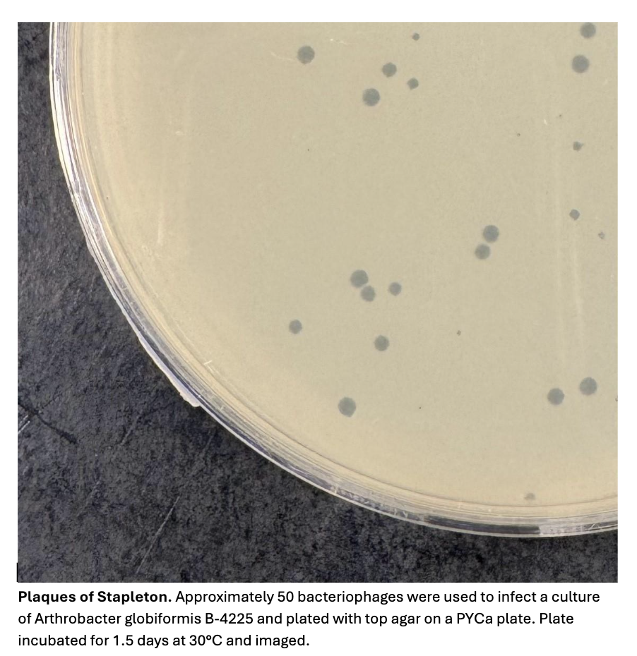| Naming Notes | The name of my phage "Stapleton" was named after my love for country music. |