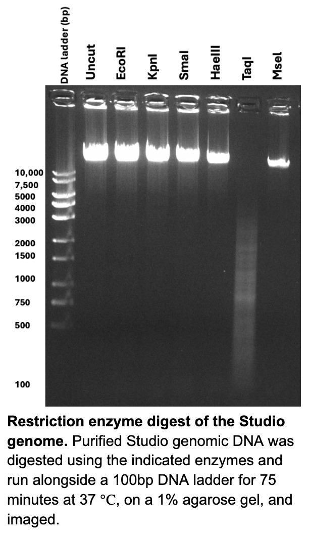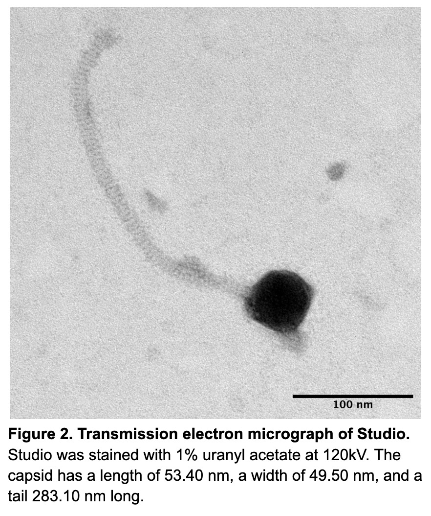 | Plaque Notes | The isolated bacteriophage Studio produced small, clear plaques on Arthrobacter globiformis, a morphology that is generally suggestive of a lytic infection cycle. However, Studio did not show consistent plaque formation throughout the purification process, with plaque appearance varying noticeably across different host batches. |