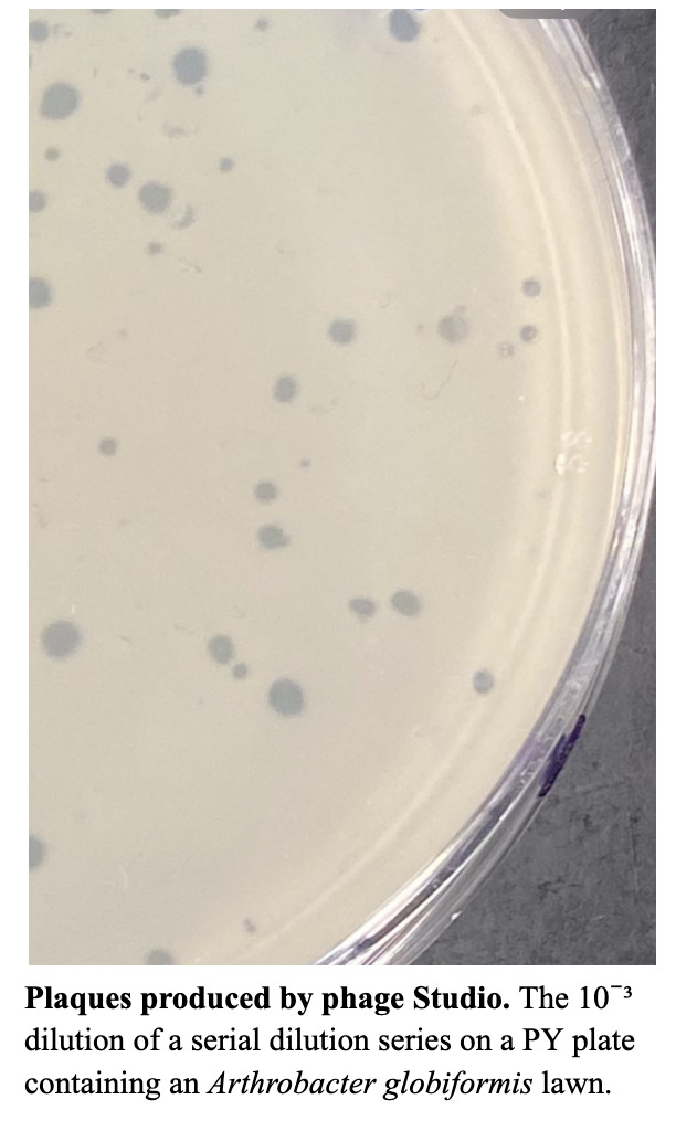 | Discovery Notes | Phage Studio was discovered from a soil sample collected on September 19th from a garden bed in the Rockland community garden. The sample site was located at 45.5415523, -75.2944494 with an ambient temperature of approximately 15 °C at the time of collection. |