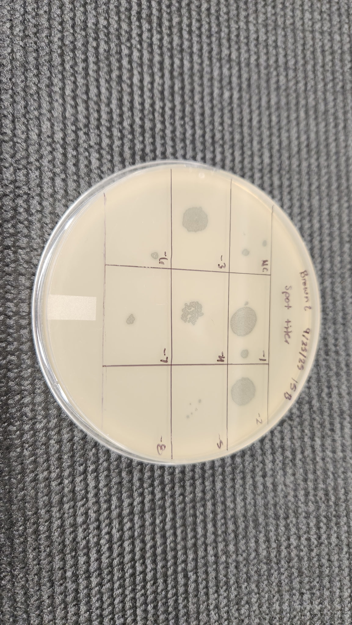 Plaque Notes | 1mm, 1mm, 1mm, .5mm, .5mm. Five total plaques. Obtained from 10^-5. |