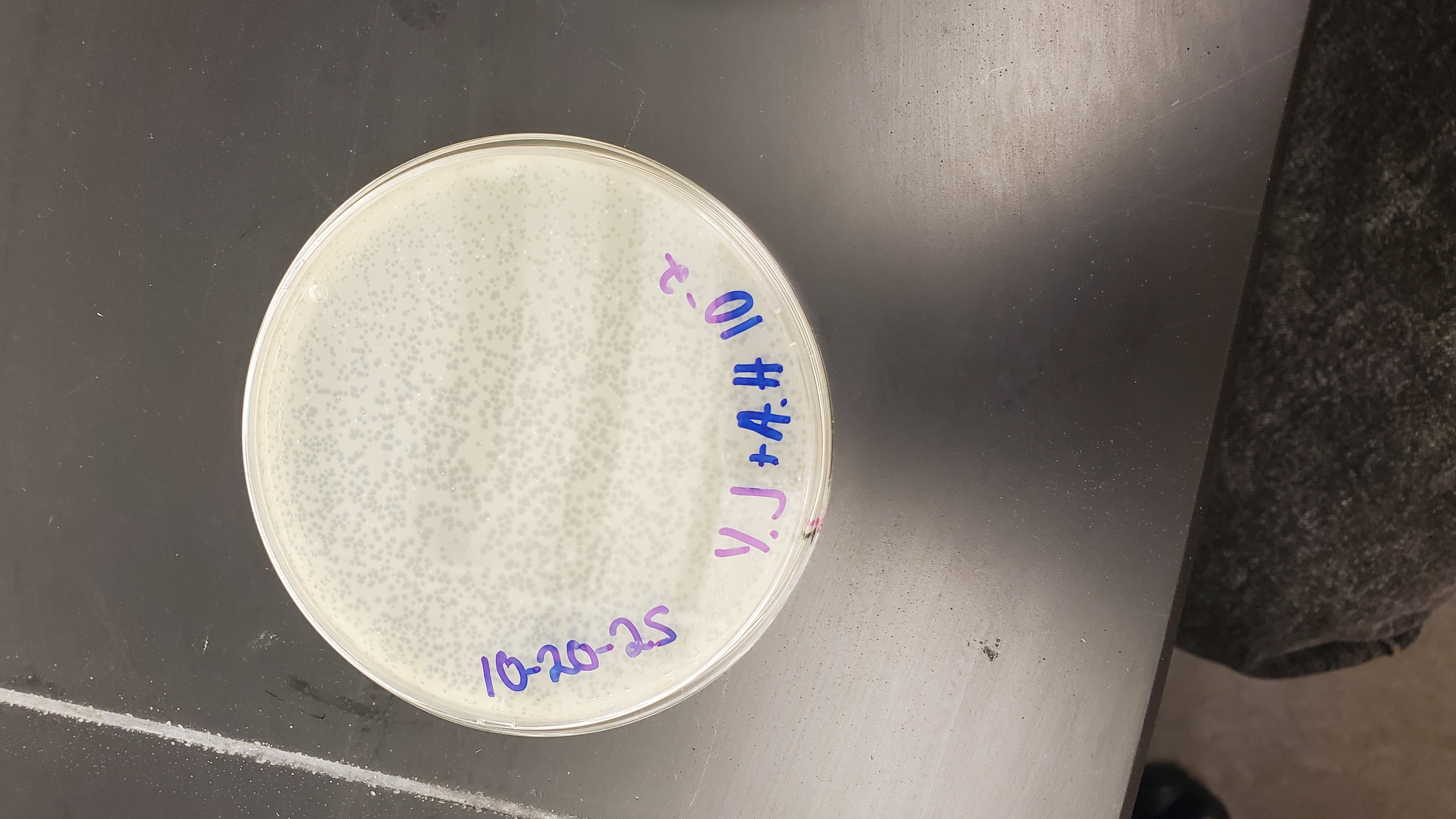 | Plaque Notes | About 1mm phages scattered around the plate, with a serial dilution of -2. They were very visible phages, clear. |